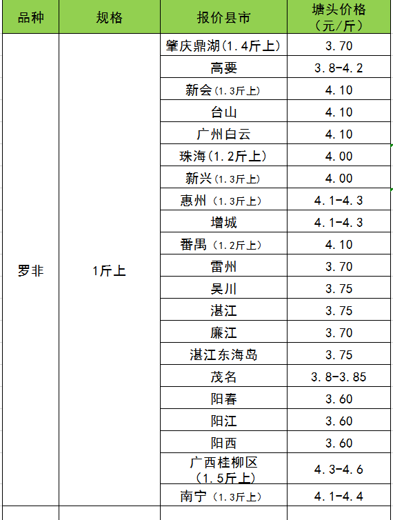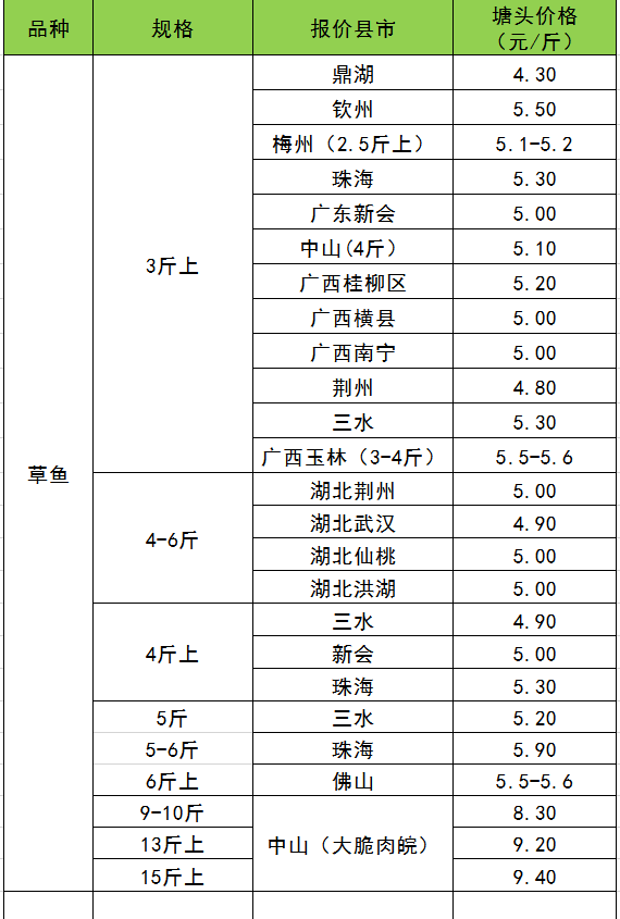 2019年12月1日淡水鱼价格、加州鲈、螃蟹、南美白对虾等特种水产价格
