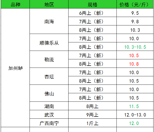 2019年12月9日淡水鱼价格、加州鲈、螃蟹、南美白对虾等特种水产价格